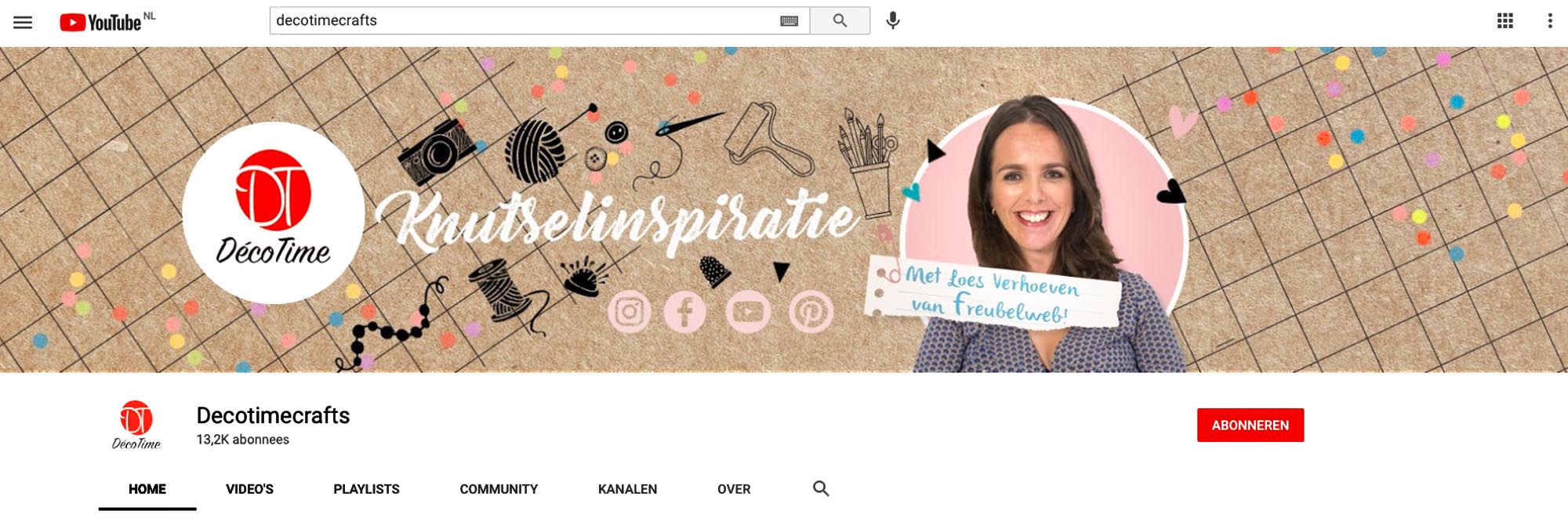 Sinds 2018 is Loes Verhoeven van Freubelweb hét gezicht voor knutselmerk ‘Decotime’.De producten van het merk DecoTime worden verkocht bij winkelketen Action. Loes heeft o.a. een YouTube-kanaal met video’s, Decotimecrafts, waarin ze kijkers laat zien hoe en wat je kunt maken met de Decotime-producten. De vlogs worden door ons in de studio gefilmd en geëdit. Het kanaal is zeer succesvol en heeft inmiddels meer dan 12.000 volgers!